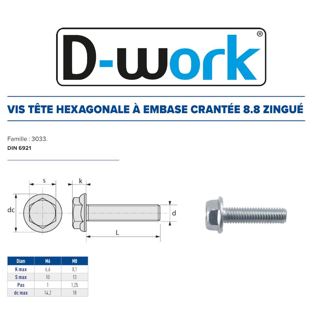500 Vis à Tête Hexagonale Crantée 6x16 mm – Acier 8.8, Zingué Blanc, Norme DIN 6921 – Fixation Sécurisée - LENNIE