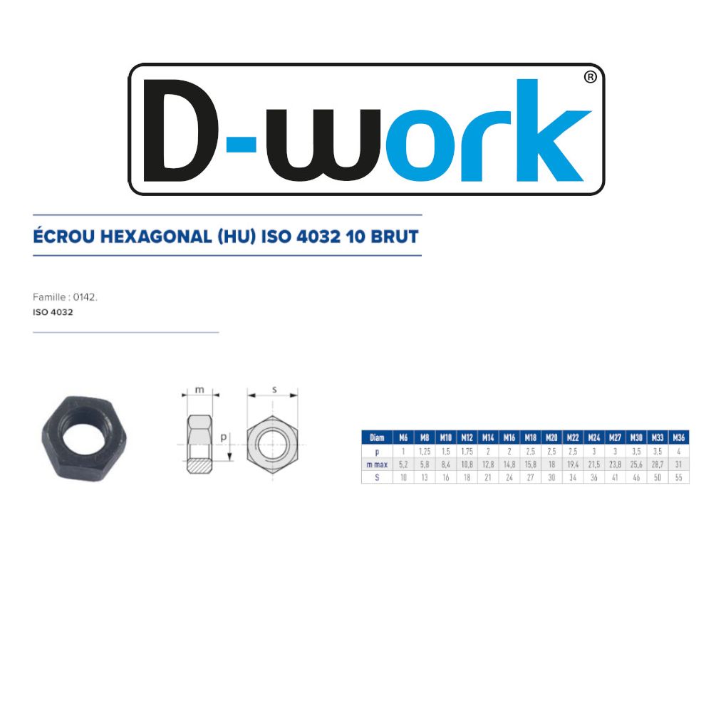 10 Écrous Hexagonaux M27 – Acier Brut, Norme ISO 4032.8 – Fixation Sécurisée et Durable - LENNIE