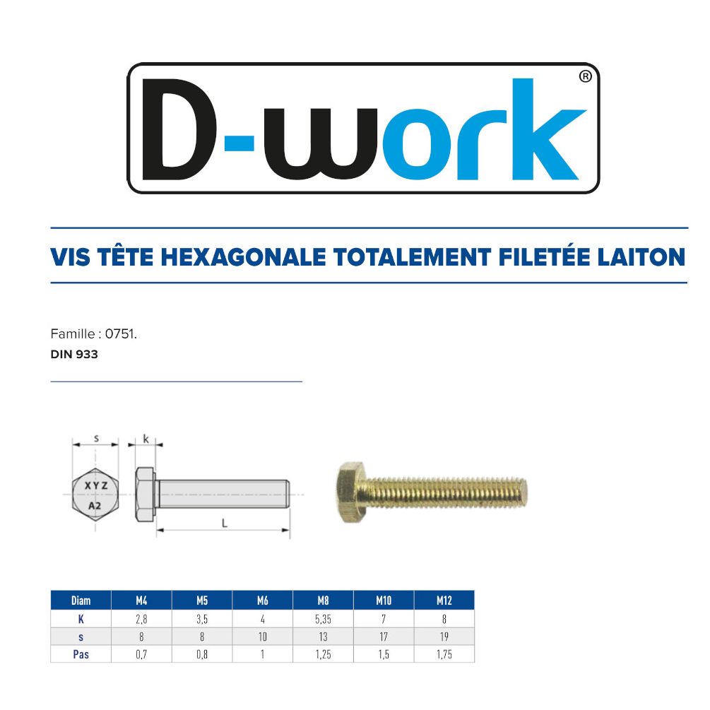 50 Vis à Tête Fraisée 12x20 mm – Laiton, Norme DIN 933 – Fixation Durable et Esthétique - LENNIE