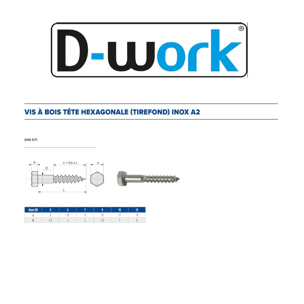 100 Ziehschrauben Holz Sechskantkopf (TH) 8 x 60 mm Edelstahl A2 DIN 571 - D-Work