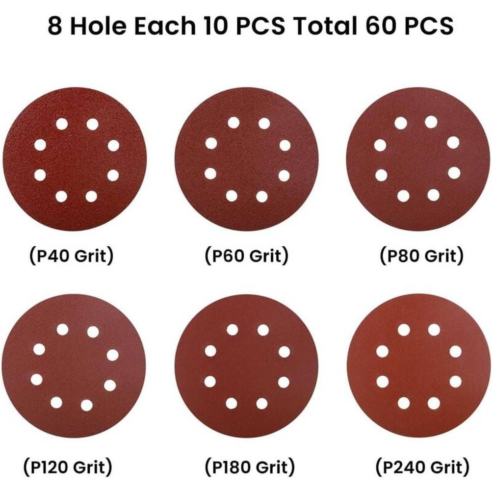 Disques Abrasifs Velcro P60 125 mm - 20 pièces, 8 trous - Idéal pour Ponçage et Finition - Beast