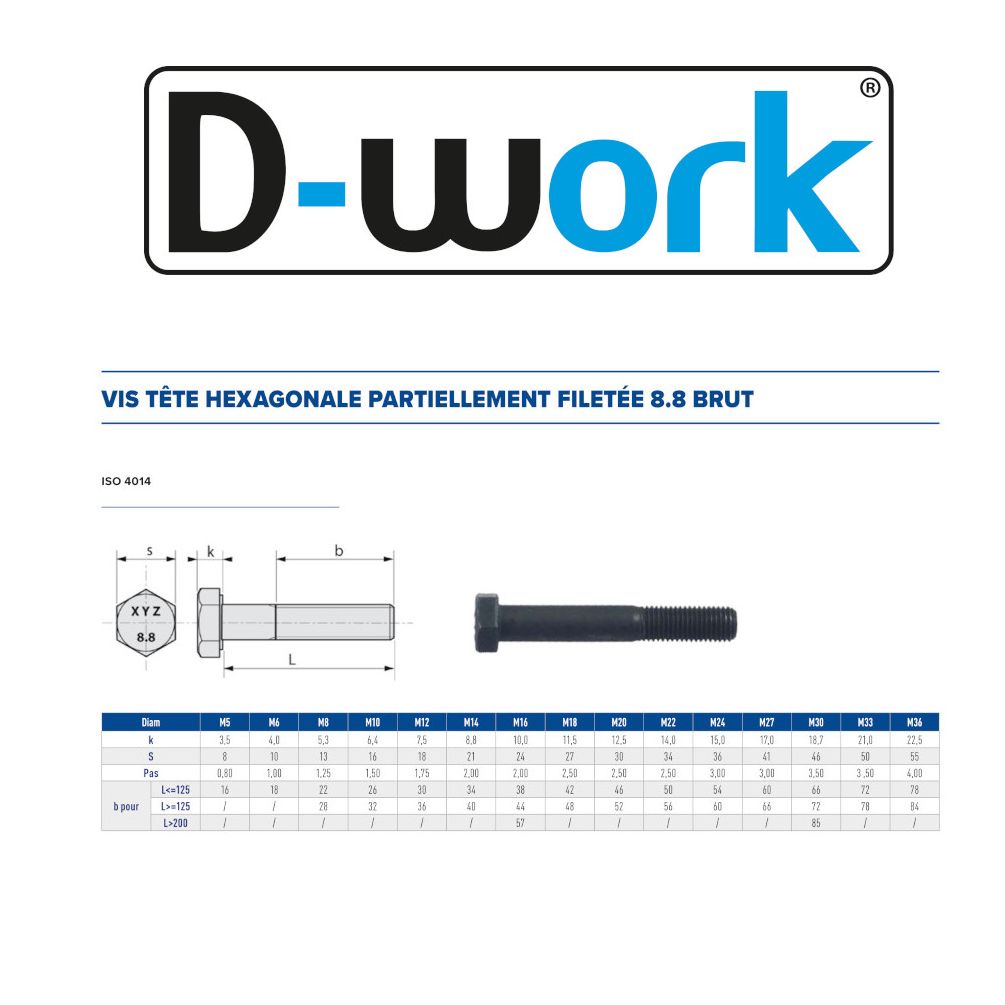 10 Vis Tête Fraisée Filetées 30x80 mm - Acier CL8.8 Brut - Fixation Solide et Durable - D-Work