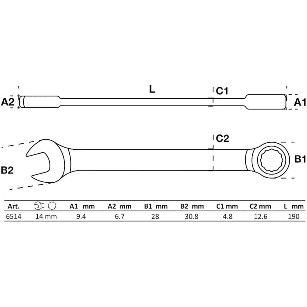 Clé Mixte à Cliquet 14 mm - Acier, Ergonomique et Pratique - - BGS