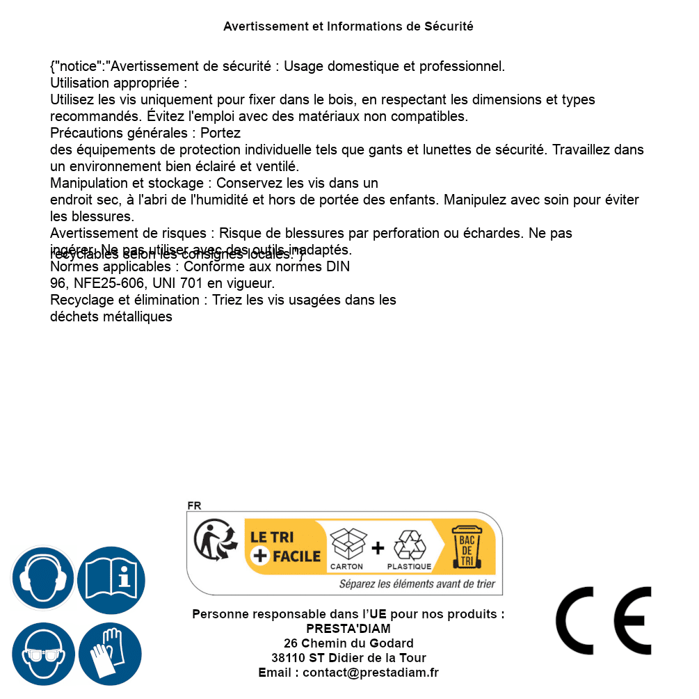 | Verantwortliche Person EU | PRESTA'DIAM 26 Chemin du Godard 38110 ST Didier de la Tour Email: contact@prestadiam.fr |