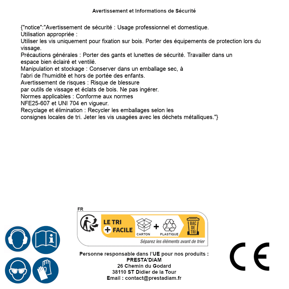 | Verantwortliche Person EU | PRESTA'DIAM 26 Chemin du Godard 38110 ST Didier de la Tour Email: contact@prestadiam.fr |