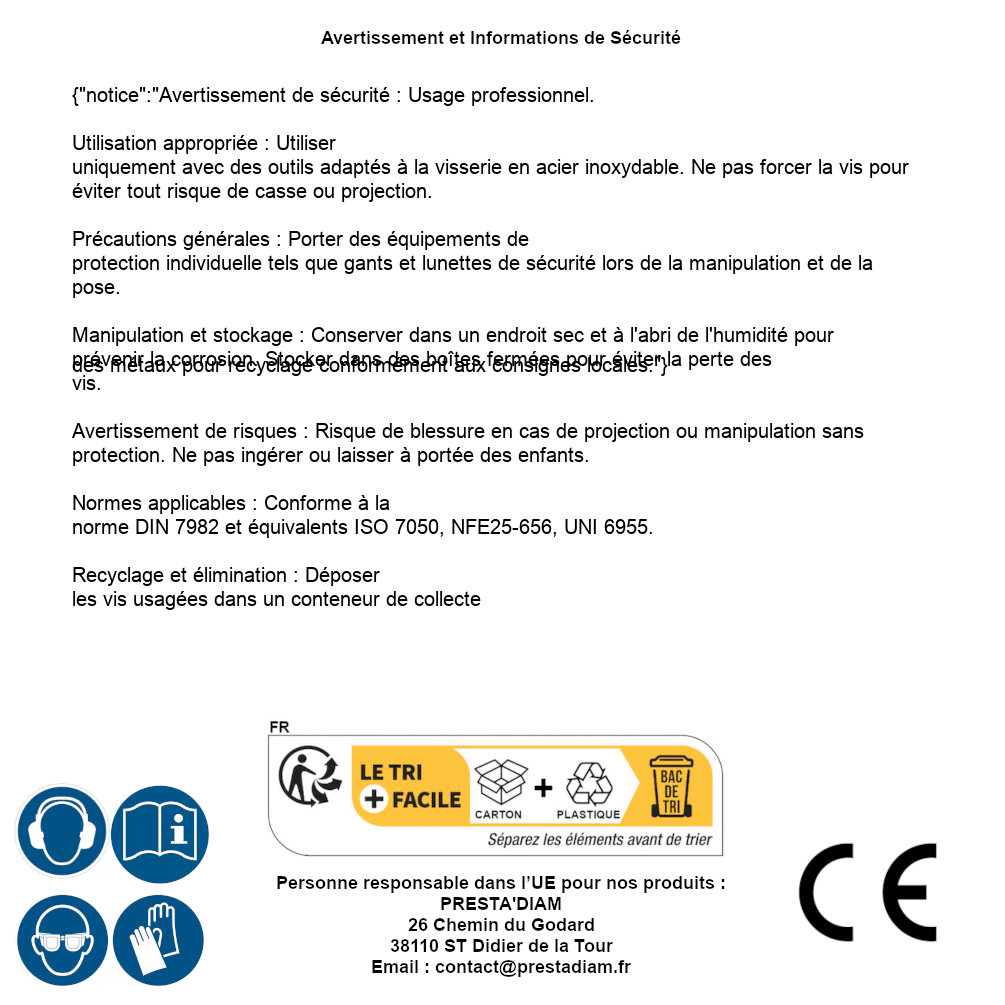 | Verantwortliche Person EU | PRESTA'DIAM 26 Chemin du Godard 38110 ST Didier de la Tour Email: contact@prestadiam.fr |