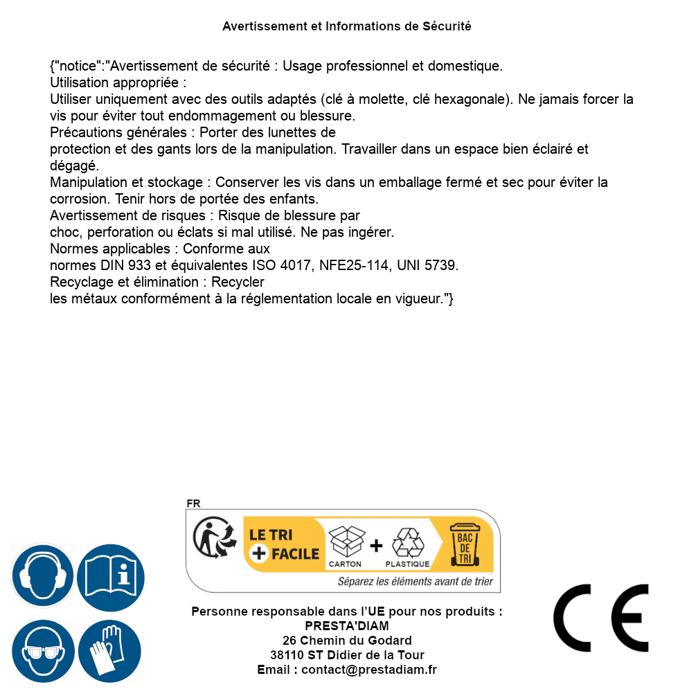 | Verantwortliche Person EU | PRESTA'DIAM 26 Chemin du Godard 38110 ST Didier de la Tour Email: contact@prestadiam.fr |
