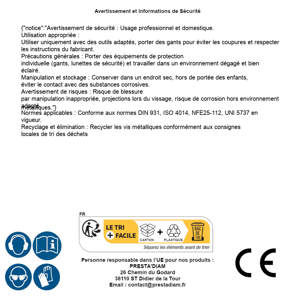 | Verantwortliche Person EU | PRESTA'DIAM 26 Chemin du Godard 38110 ST Didier de la Tour Email: contact@prestadiam.fr |