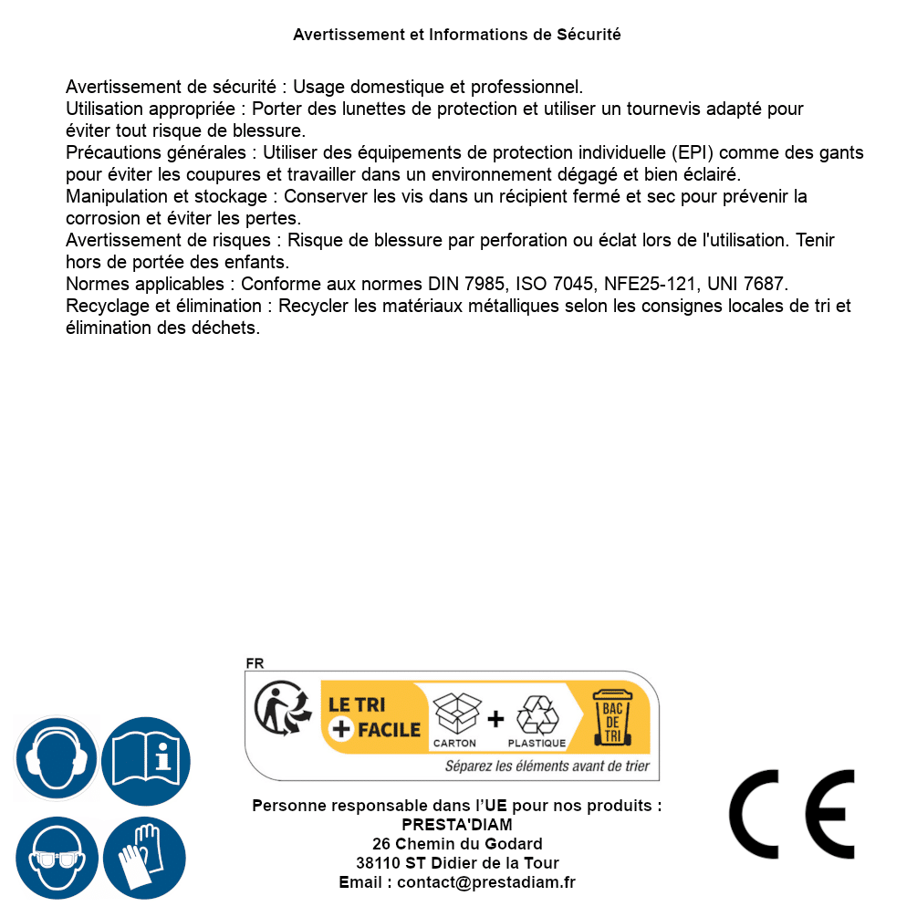 | Verantwortliche Person EU | PRESTA'DIAM 26 Chemin du Godard 38110 ST Didier de la Tour Email: contact@prestadiam.fr |