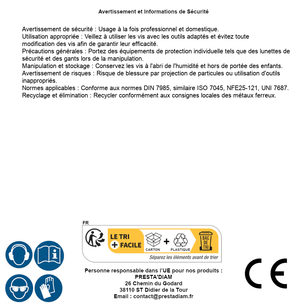 | Verantwortliche Person EU | PRESTA'DIAM 26 Chemin du Godard 38110 ST Didier de la Tour Email: contact@prestadiam.fr |