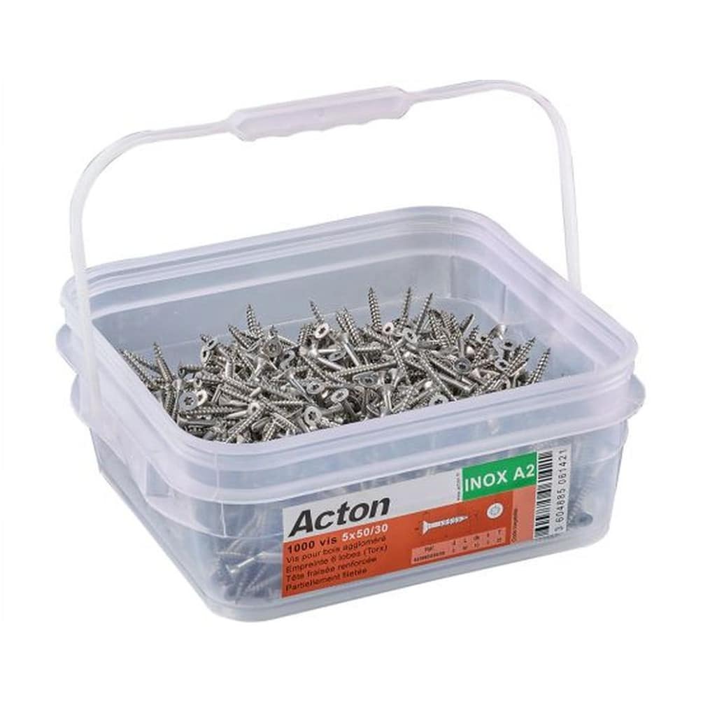 50 Vis pour bois aggloméré 8x160/80 mm - Tête fraisée six lobes - Inox A4 - ACTON