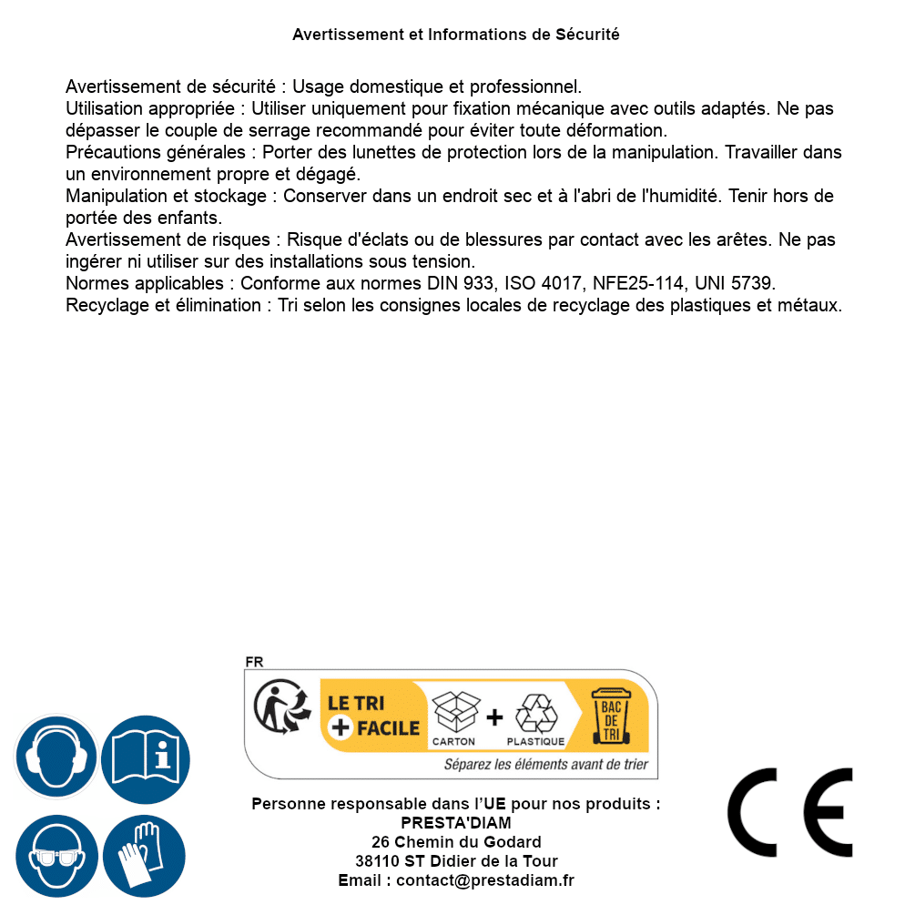 | Verantwortliche Person EU | PRESTA'DIAM 26 Chemin du Godard 38110 ST Didier de la Tour Email: contact@prestadiam.fr |