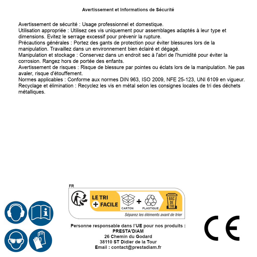 | WARNUNG und SICHERHEIT | Identification de la personne responsable dans l’UE : Nom : PRESTA'DIAM. Adresse : 26 Chemin du Godard, 38110 ST Didier de la Tour (France). Email : contact@prestadiam.fr. |