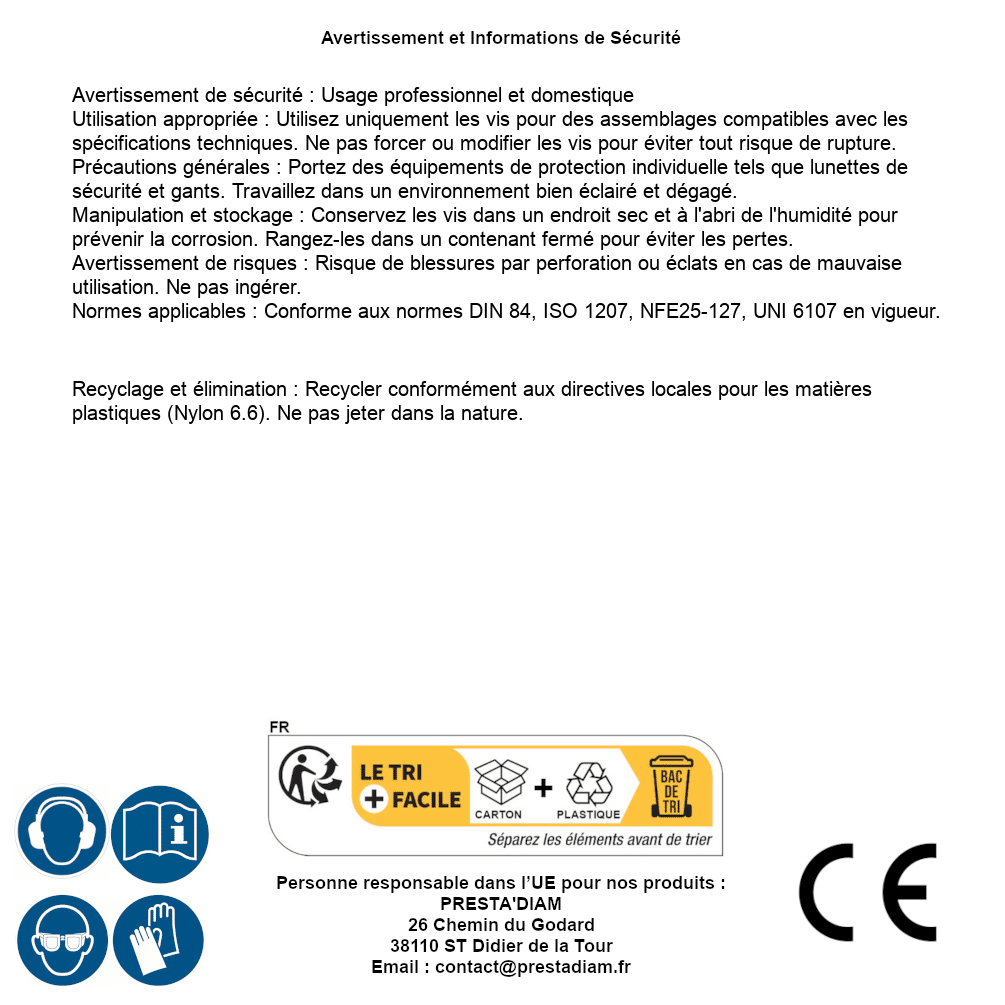 | Verantwortliche Person EU | PRESTA'DIAM 26 Chemin du Godard 38110 ST Didier de la Tour Email: contact@prestadiam.fr |