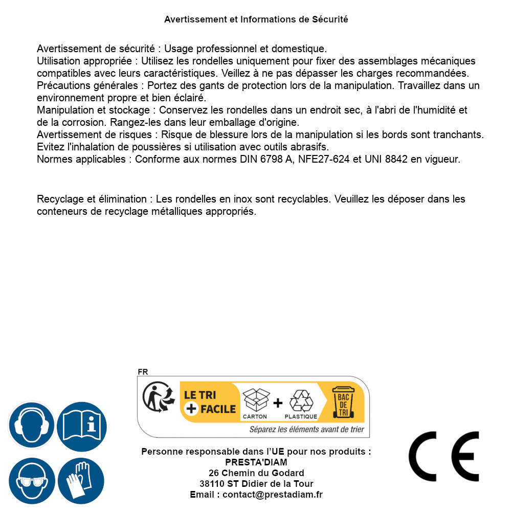 | WARNUNG und SICHERHEIT | Identification de la personne responsable dans l’UE : Nom : PRESTA'DIAM. Adresse : 26 Chemin du Godard, 38110 ST Didier de la Tour (France). Email : contact@prestadiam.fr. |