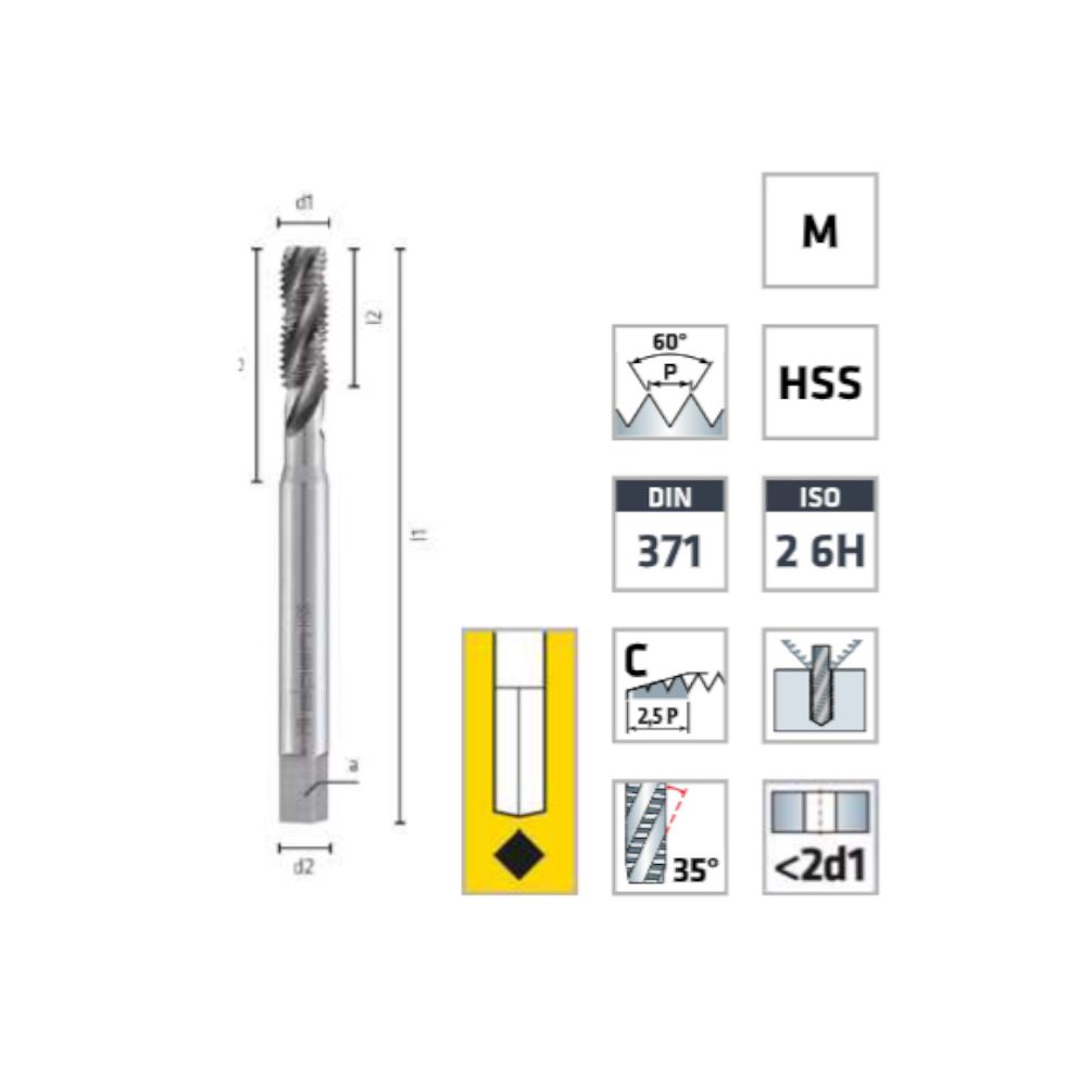 Taraud à Rainurer HSS Emmanchement Hexagonal 1/4 Filetage M8 Longueur 40 mm - ALPEN-MAYKESTAG