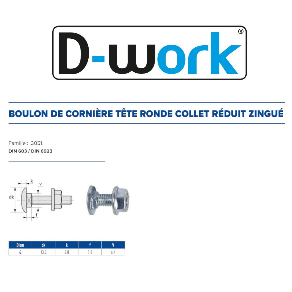 200 pernos de cabeza redonda y collar cuadrado (TRCC) 6 x 50 mm zincados en negro - D-Work