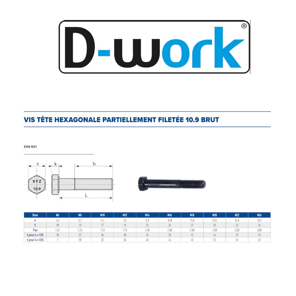 50 Vis à Tête Hexagonale 10x110 mm – Acier CL8.8, Norme DIN 912 – Fixation Sécurisée et Durable - LENNIE