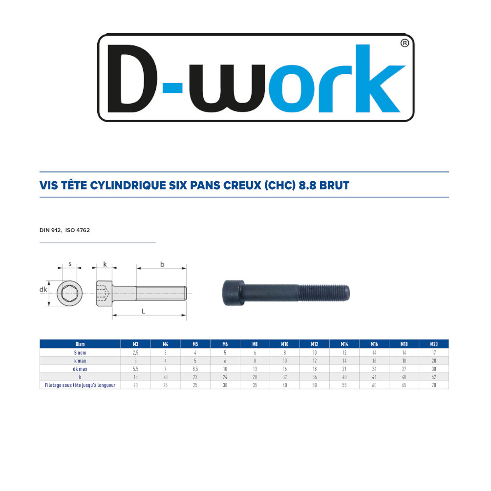 200 Vis à Tête Hexagonale 10x12 mm – Acier CL8.8, Norme DIN 912 – Fixation Sécurisée et Durable - LENNIE
