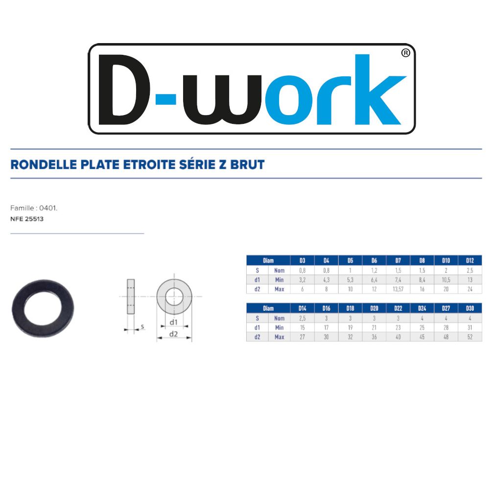 200 Rondelles Plates Étroites Z10 – Acier Brut, Norme NFE 25513 – Fixation Sécurisée et Durable - LENNIE