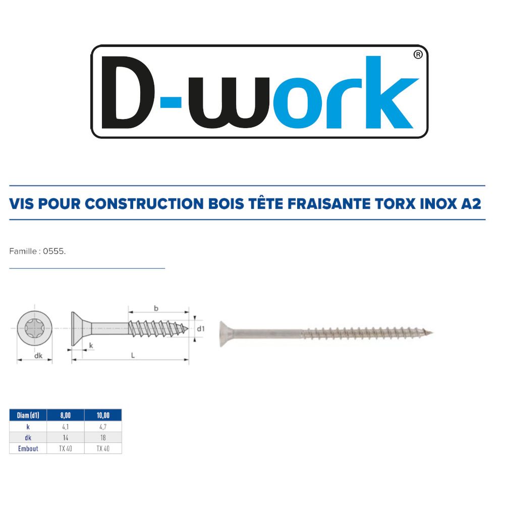 500 Tornillos de Acero Inoxidable A2 para Madera - Dimensiones 5 x 50 mm, Cabeza con Muesca Reducida + Pieza Final TX25 Gratis - D-Work
