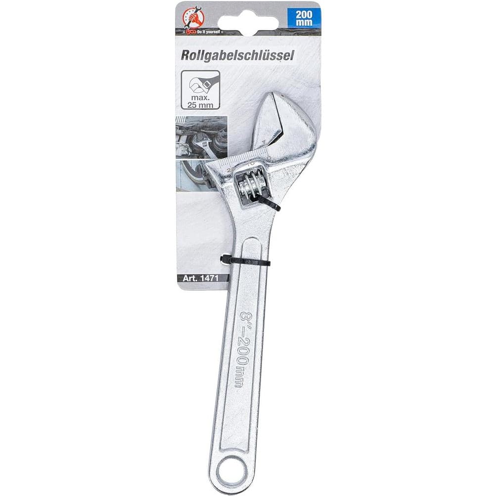 Clé à molette 200 mm - Ouverture 25 mm - Acier Résistant - Prise Ferme et Ajustable - BGS