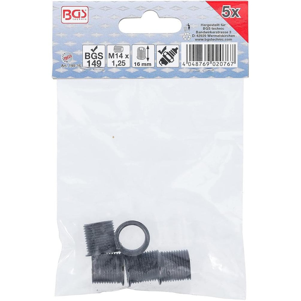 Inserts Taraudés M14 x 1,25 mm - 5 Pièces, 16 mm - Acier Résistant - Fixation Fiable et Durable - BGS
