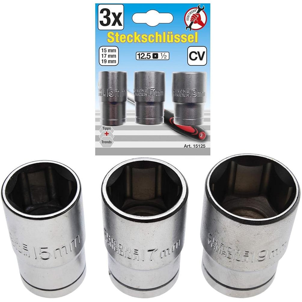 Jeu de Douilles 12,5 mm (1/2 ) 15-17-19 mm - 3 Pièces - Acier Résistant et Pratique pour Mécanique - BGS