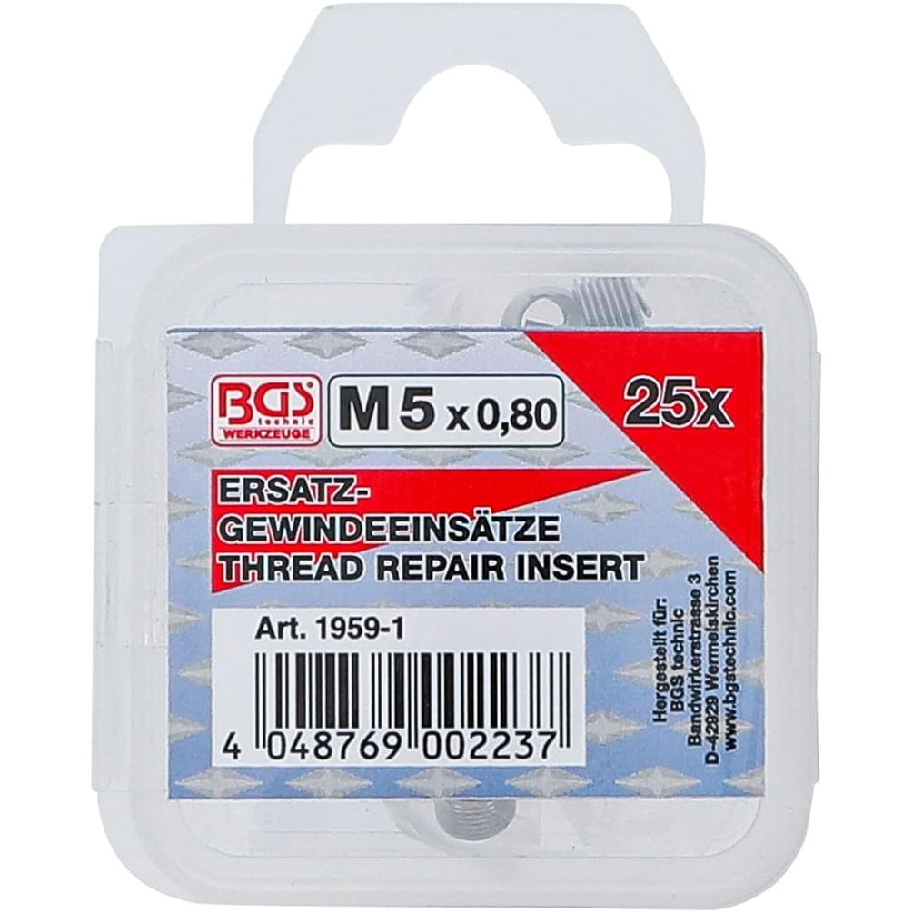 Inserts Taraudés M5 x 0,8 - Lot de 25 pièces - Acier Résistant - Fixation Fiable et Durable - BGS