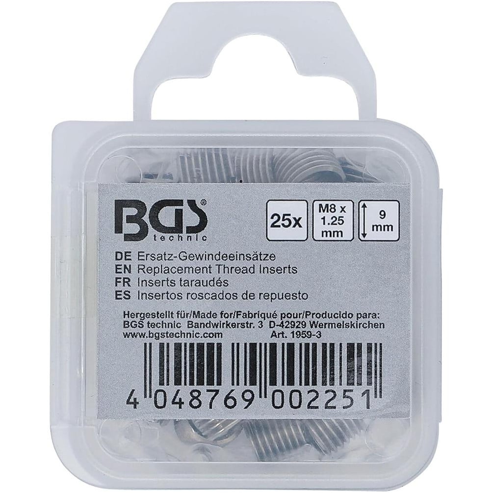 Inserts Taraudés M8 x 1,25 - 25 Pièces - Acier Résistant - Fixation Fiable et Durable - BGS