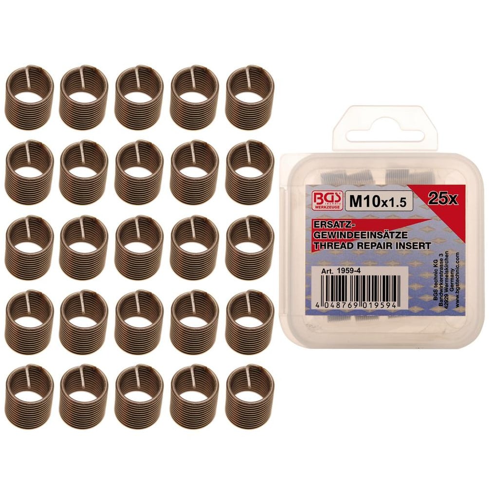 Inserts Taraudés M10 x 1,25 - Lot de 25 pièces - Acier Résistant - Fixation Fiable et Durable - BGS