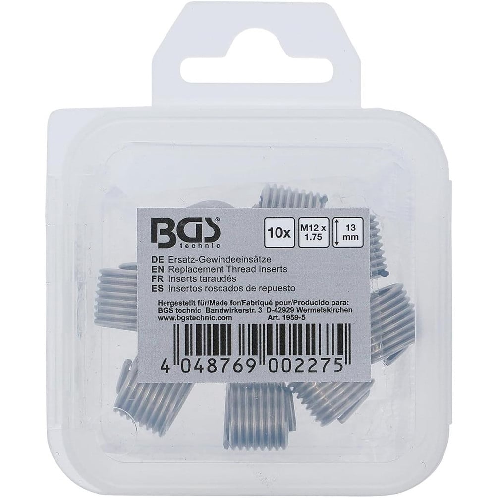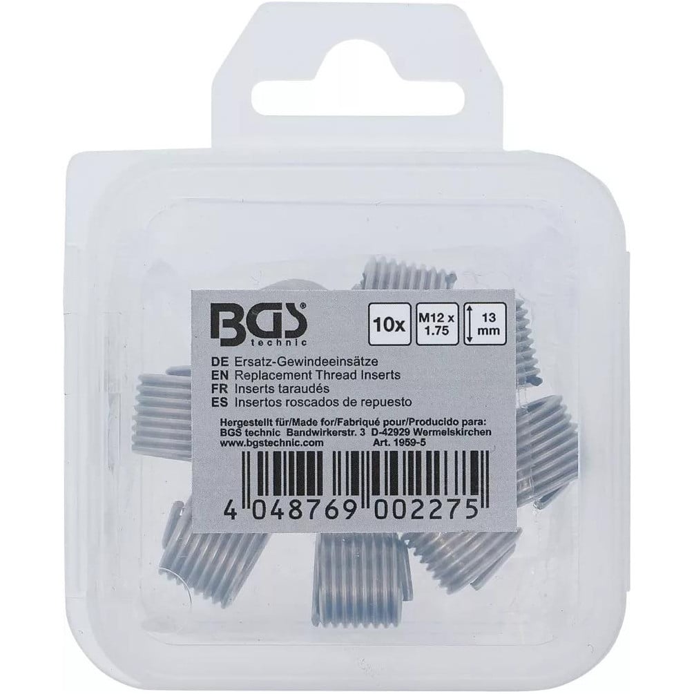 Inserts Taraudés M12 x 1,75 - Lot de 10 pièces - Acier Résistant - Fixation Fiable et Durable - BGS