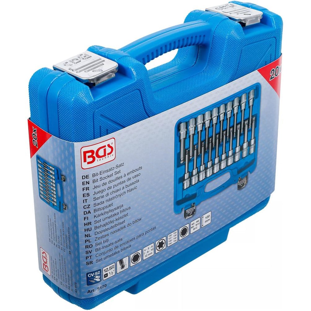 Caja de 20 piezas con 12 Puntas de vaso 3/4" de 19 a 50 mm con Carraca Reversible "Special Heavy Duty" - 340212 - Beast