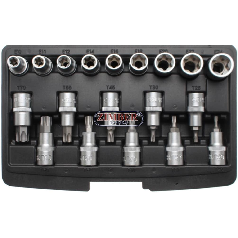 Caja 20 piezas con vasos hexagonales de 3/4" de 19 a 50 mm con carraca reversible "Special Heavy Duty" - 340211 - Beast