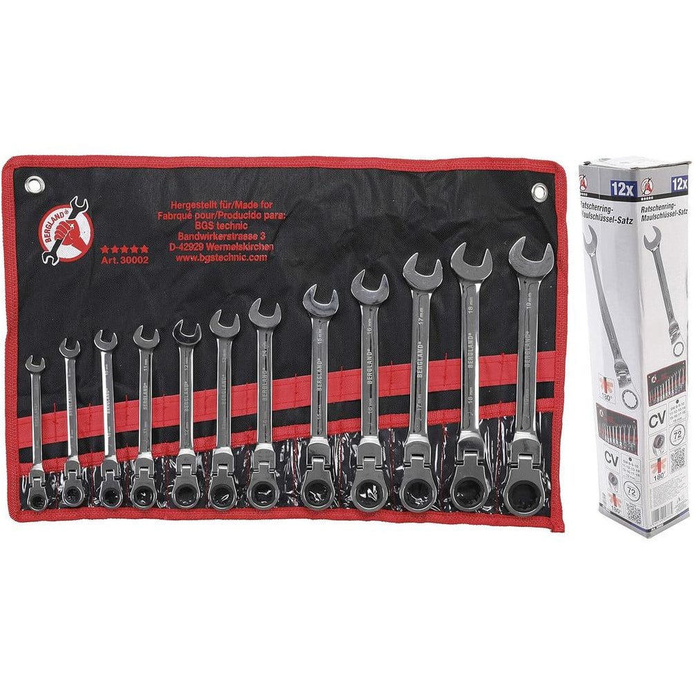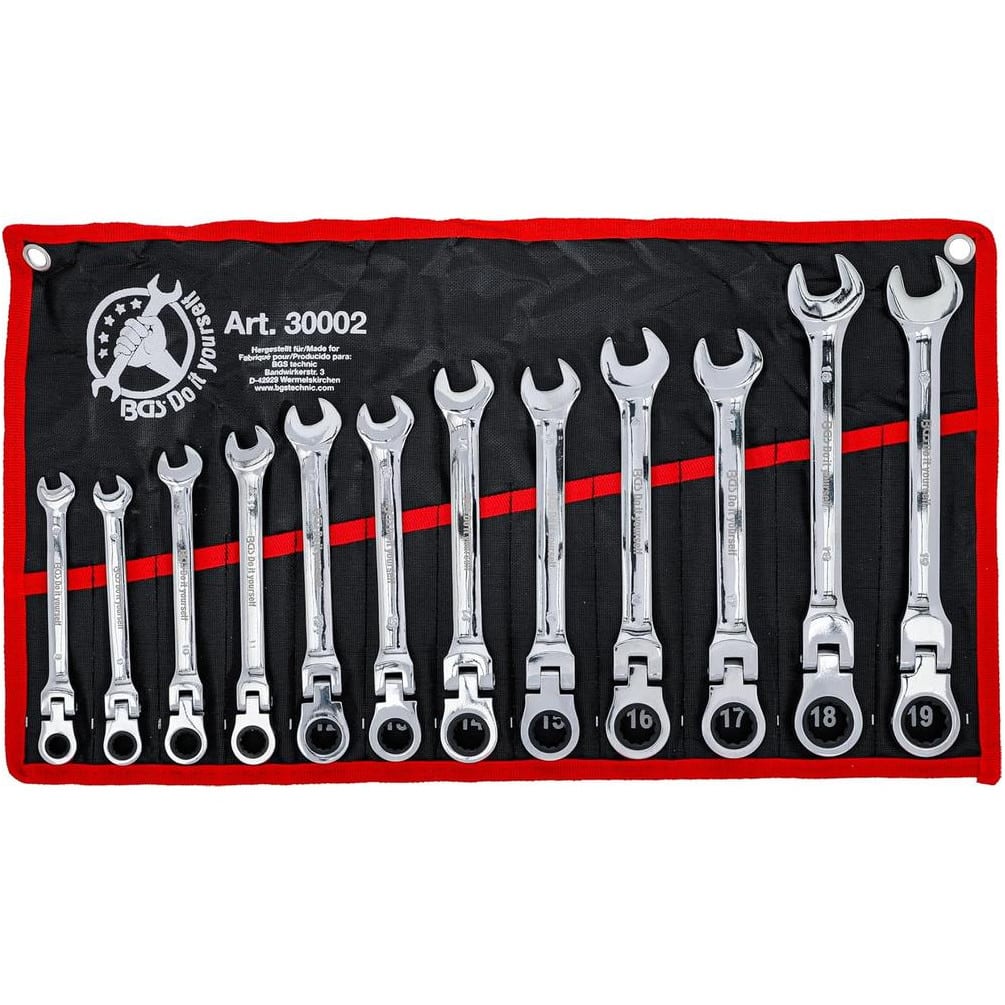 Jeu de Clés Mixtes à Cliquet 8-19 mm - Têtes Flexibles, 12 Pièces - Précision et Confort d Utilisation - BGS