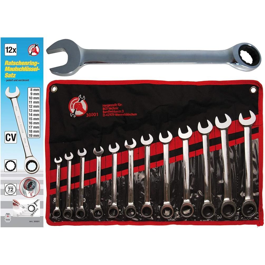 Jeu de Clés Mixtes à Cliquet 8-19 mm - 12 Pièces - Précision et Confort d Utilisation - BGS