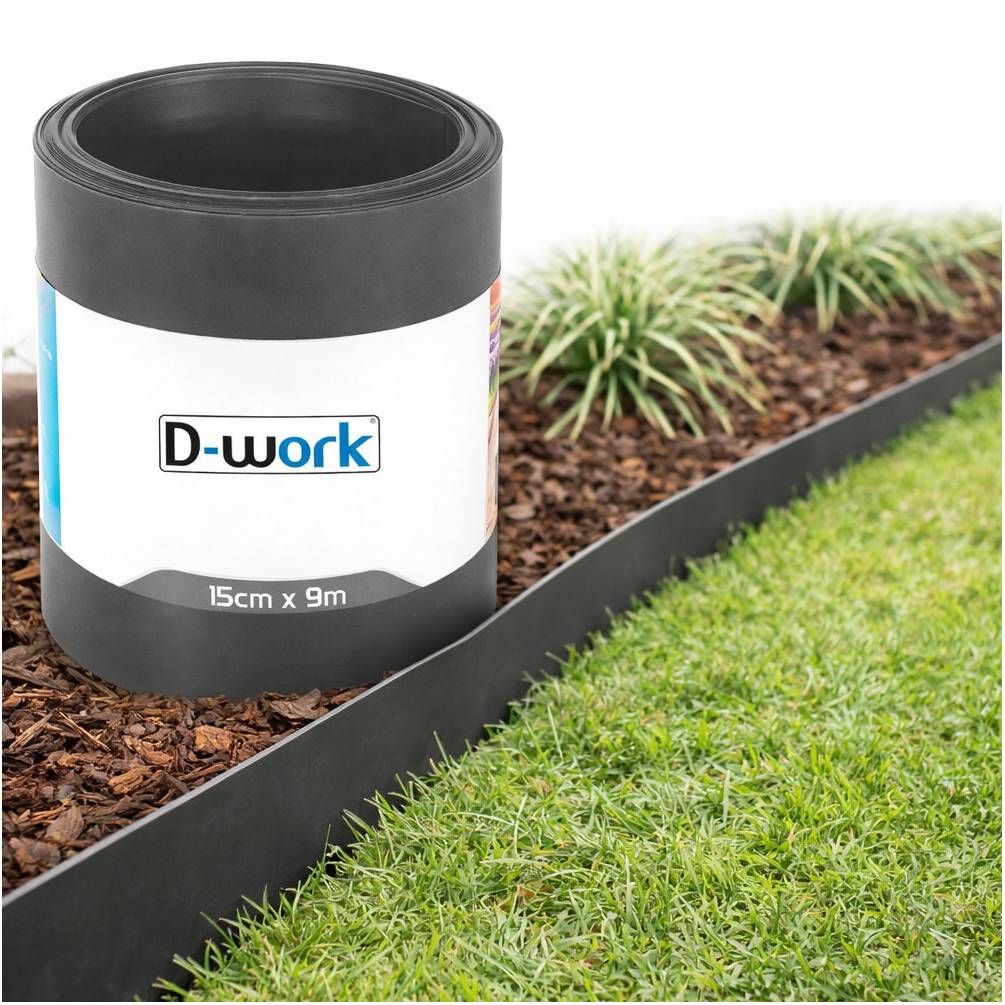 Borde de jardín flexible liso Gris Antracita Altura 15cm x Longitud 9 Metros en PVC y Anti-UV (1mm de espesor) - D-Work