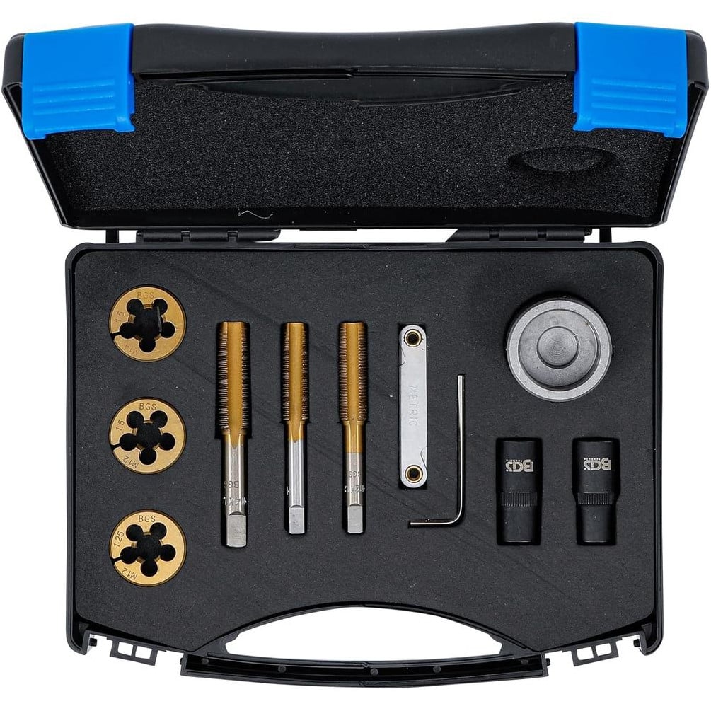 Jeu de Forets et Filières pour Écrous et Boulons de Roues - 12 Pièces - Acier Durable - Réparation et Entretien Faciles - BGS