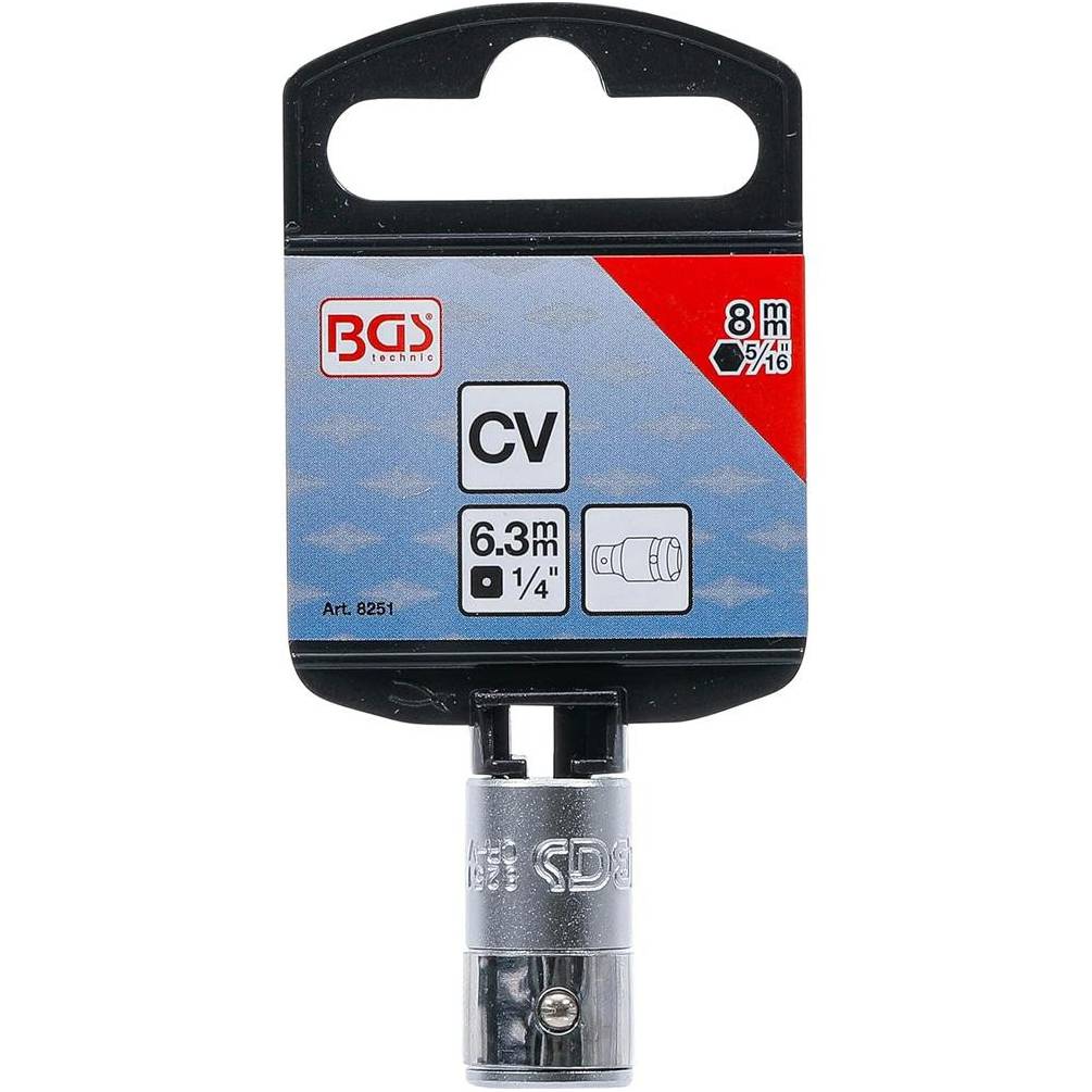 Adaptateur avec Bille de Retenue 6,3 mm (1/4 ) - Six Pans Intérieurs 8 mm (5/16 ) - Précision et Fiabilité - BGS