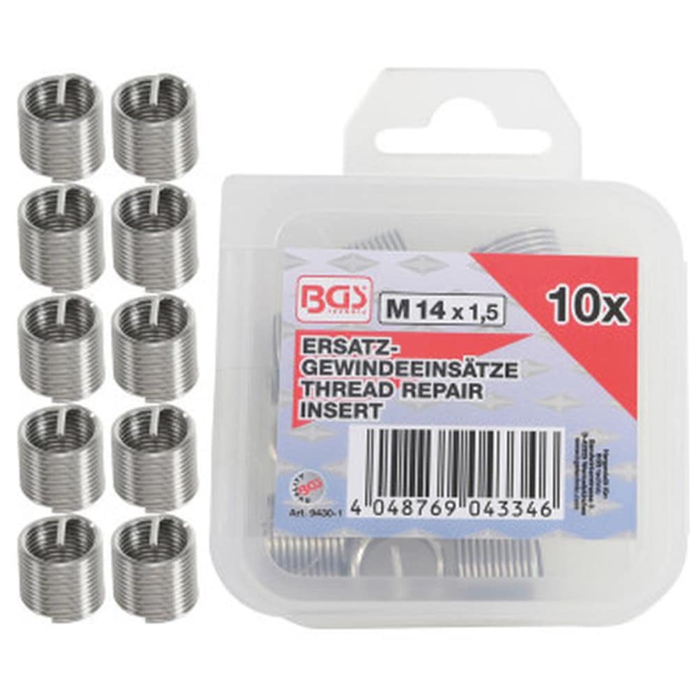 Inserts Taraudés M14 x 1,5 mm - Lot de 10 pièces - Acier Résistant - Fixation Fiable et Durable - BGS
