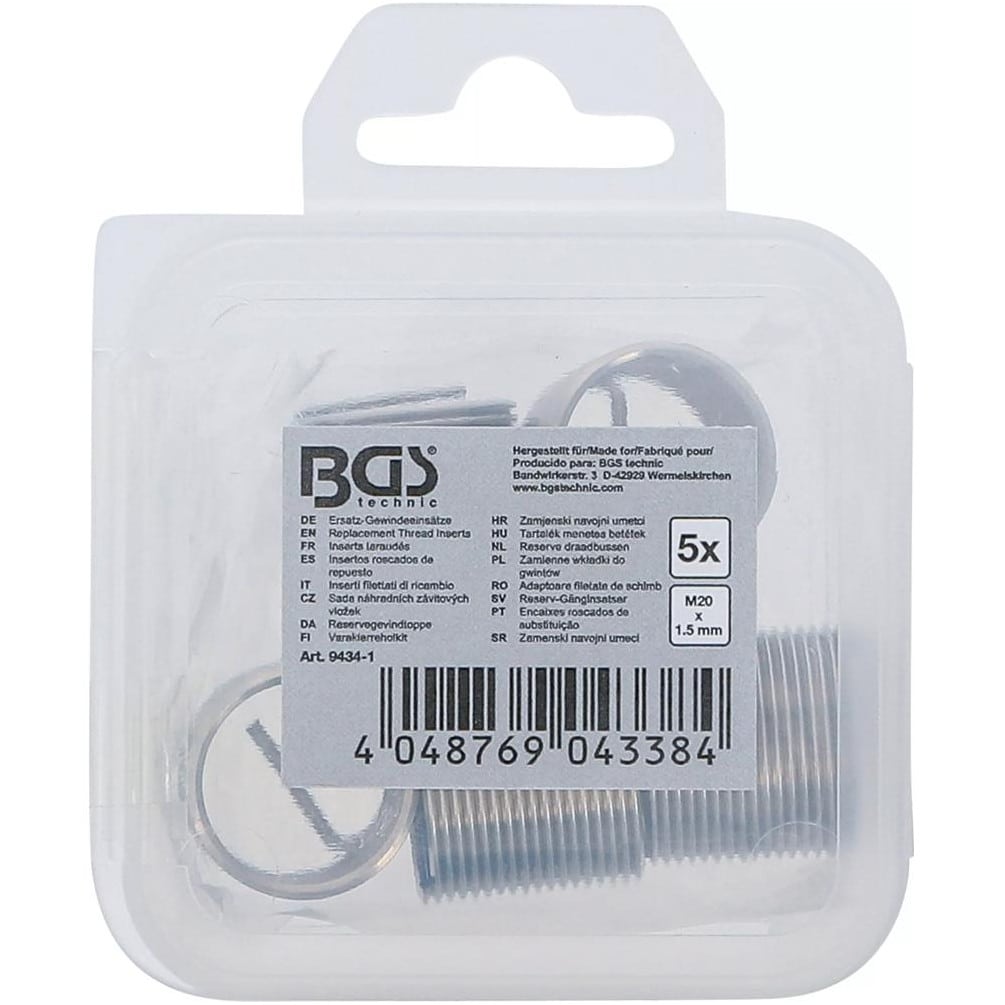 Inserts Taraudés M20 x 1,5 mm - Lot de 5 Pièces - Acier Résistant - Fixation Fiable et Durable - BGS