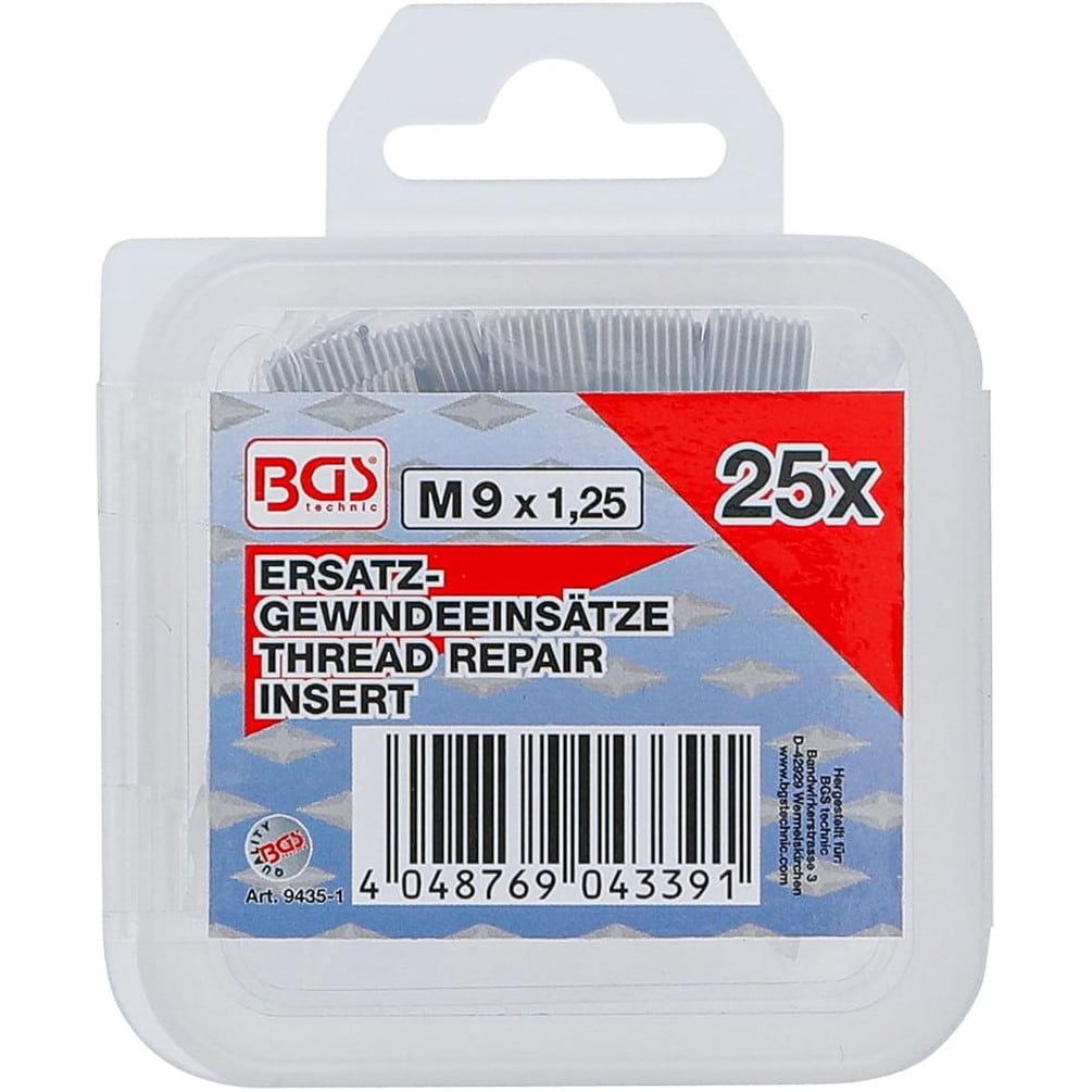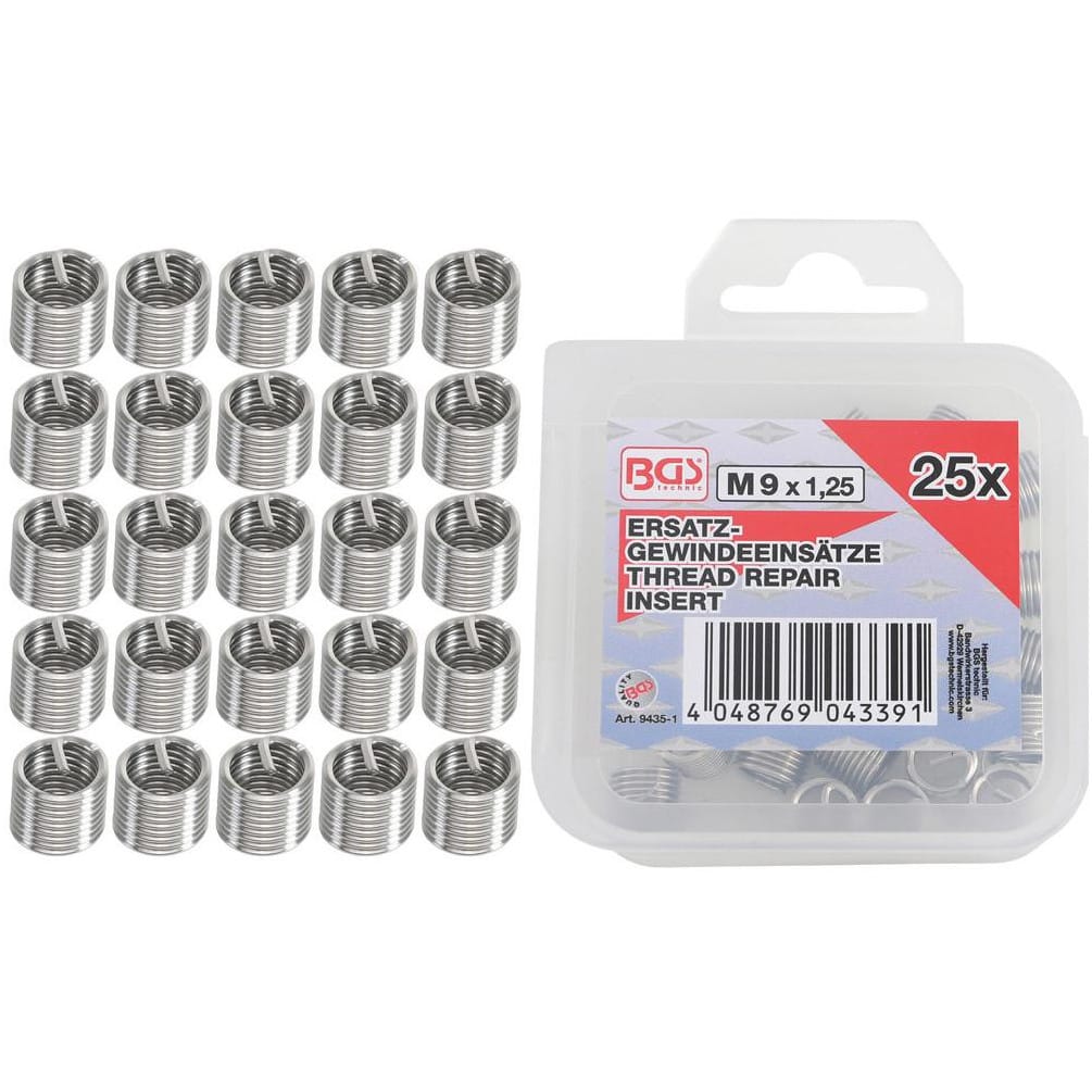 Inserts Taraudés M9 x 1,25 - Lot de 25 pièces - Acier Résistant - Fixation Fiable et Durable - BGS