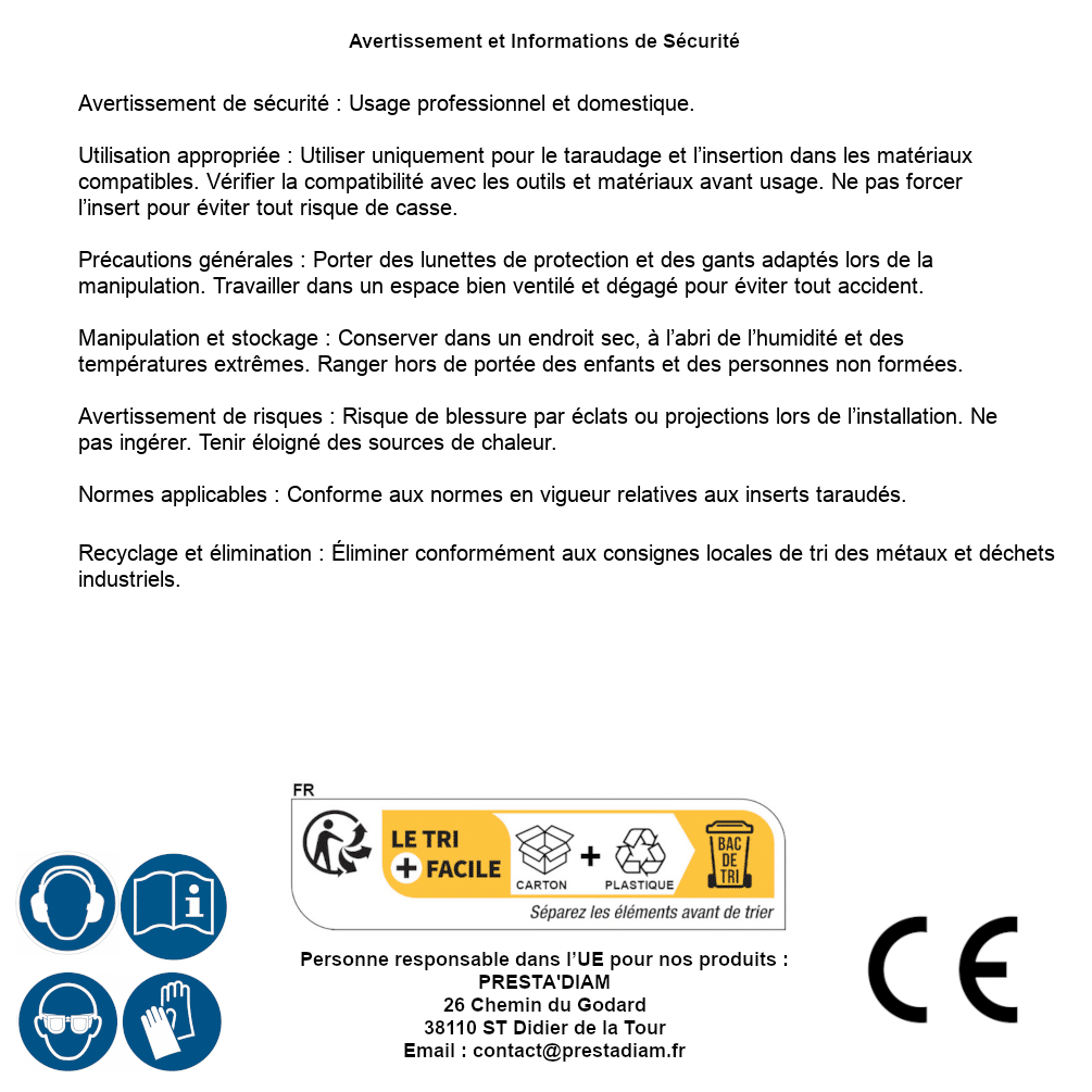 | Persona responsable UE | PRESTA'DIAM 26 Chemin du Godard 38110 ST Didier de la Tour Correo electrónico : contact@prestadiam.fr |
