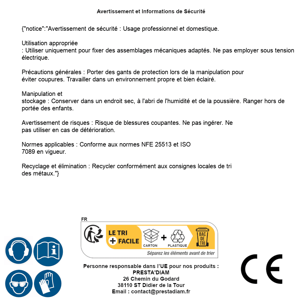 200 Rondelles Plates Étroites Z12 – Acier Brut, Norme NFE 25513 – Fixation Sécurisée - LENNIE