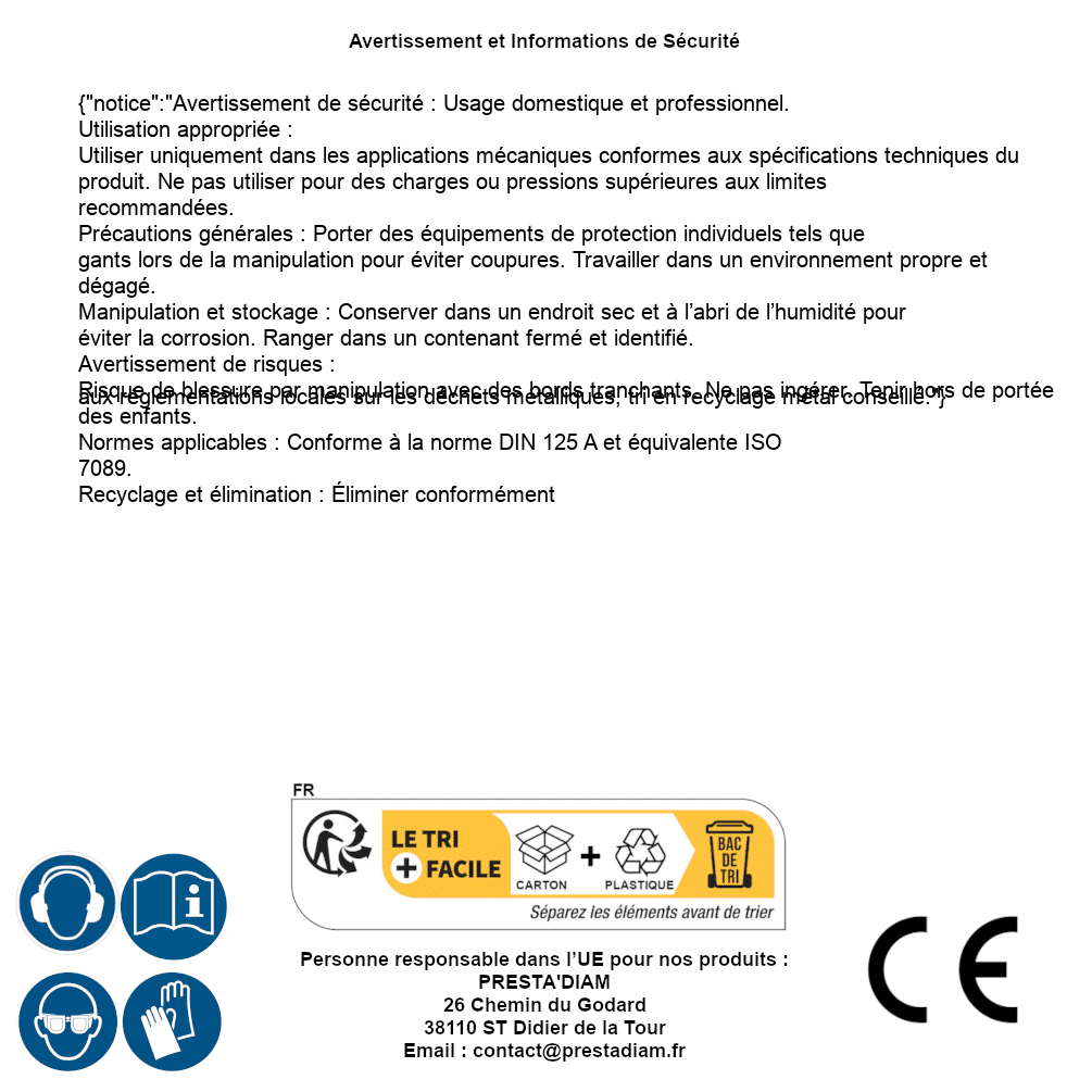 | Persona responsable UE | PRESTA'DIAM 26 Chemin du Godard 38110 ST Didier de la Tour Correo electrónico : contact@prestadiam.fr |