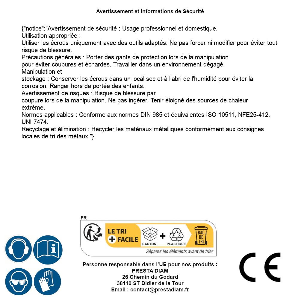 | Persona responsable UE | PRESTA'DIAM 26 Chemin du Godard 38110 ST Didier de la Tour Correo electrónico : contact@prestadiam.fr |