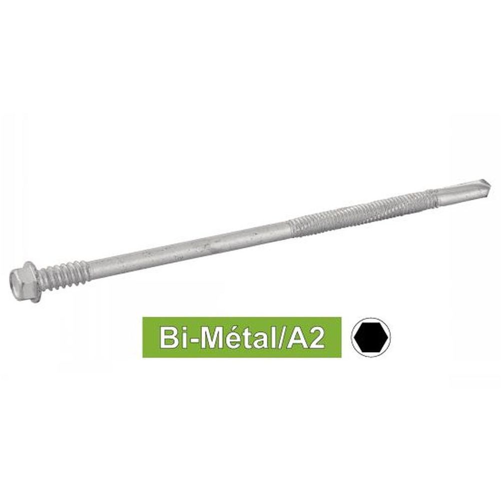 100 Vis autoperceuses tête hexagonale 6,3x135 mm - Bi-métal A2 - Double filet, pointe 3 - ACTON