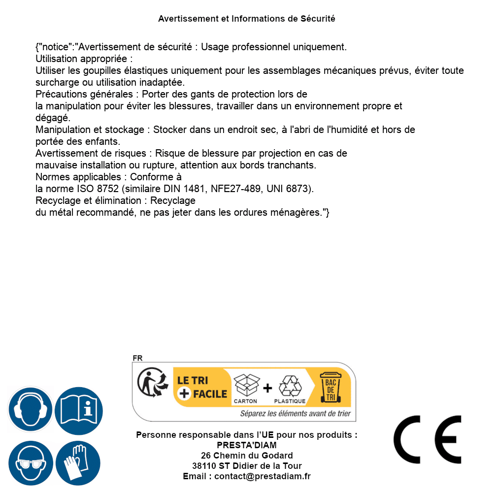 | Persona responsable UE | PRESTA'DIAM 26 Chemin du Godard 38110 ST Didier de la Tour Correo electrónico : contact@prestadiam.fr |