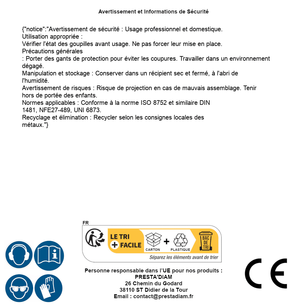 | Persona responsable UE | PRESTA'DIAM 26 Chemin du Godard 38110 ST Didier de la Tour Correo electrónico : contact@prestadiam.fr |