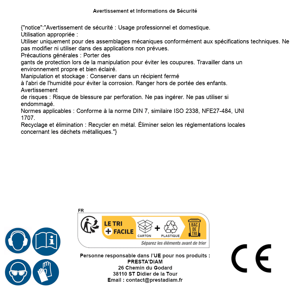 | Persona responsable UE | PRESTA'DIAM 26 Chemin du Godard 38110 ST Didier de la Tour Correo electrónico : contact@prestadiam.fr |